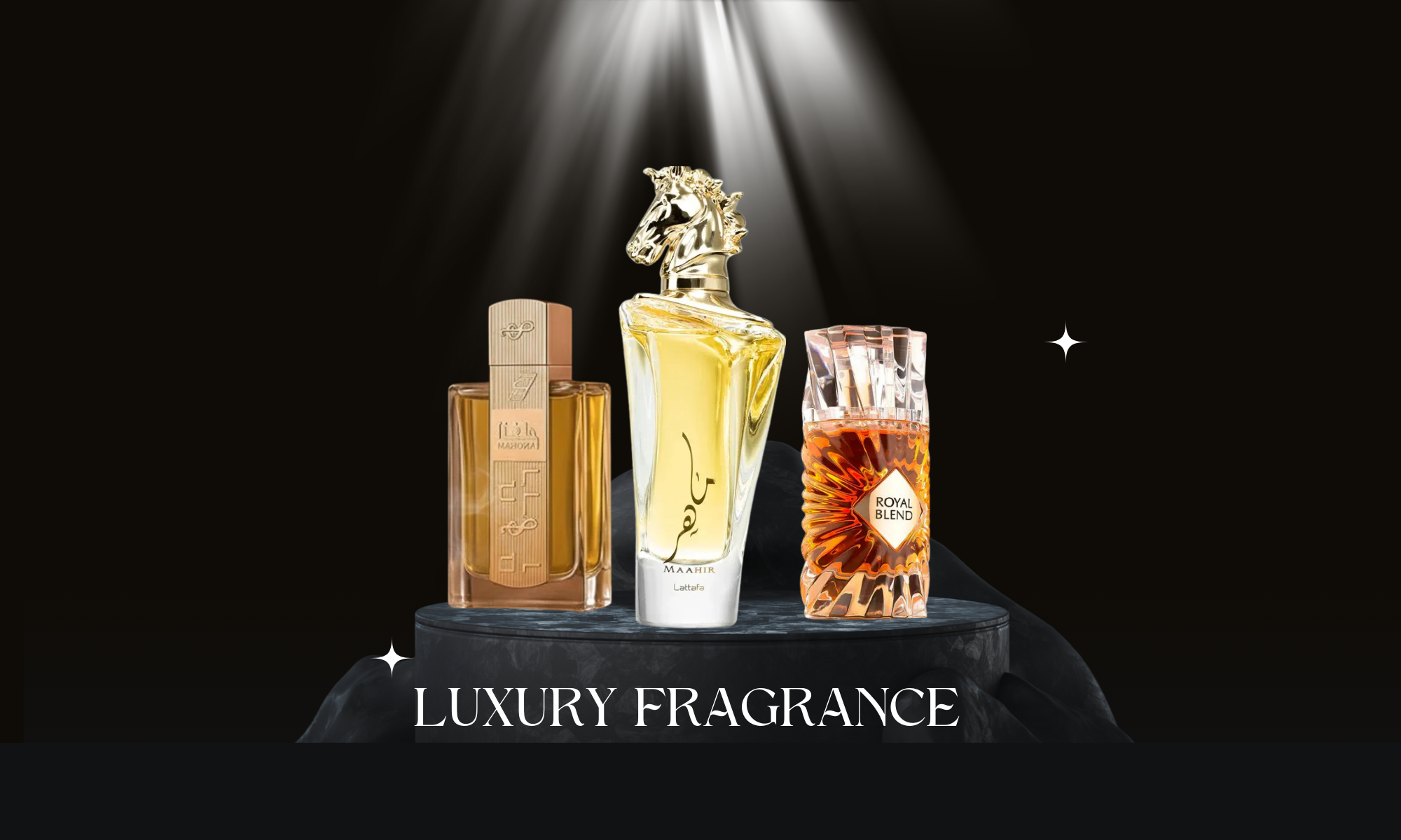 "We present a distinguished collection of fragrances crafted to embody timeless elegance and regal allure. Each scent is meticulously designed to leave a lasting impression of sophistication and charm."